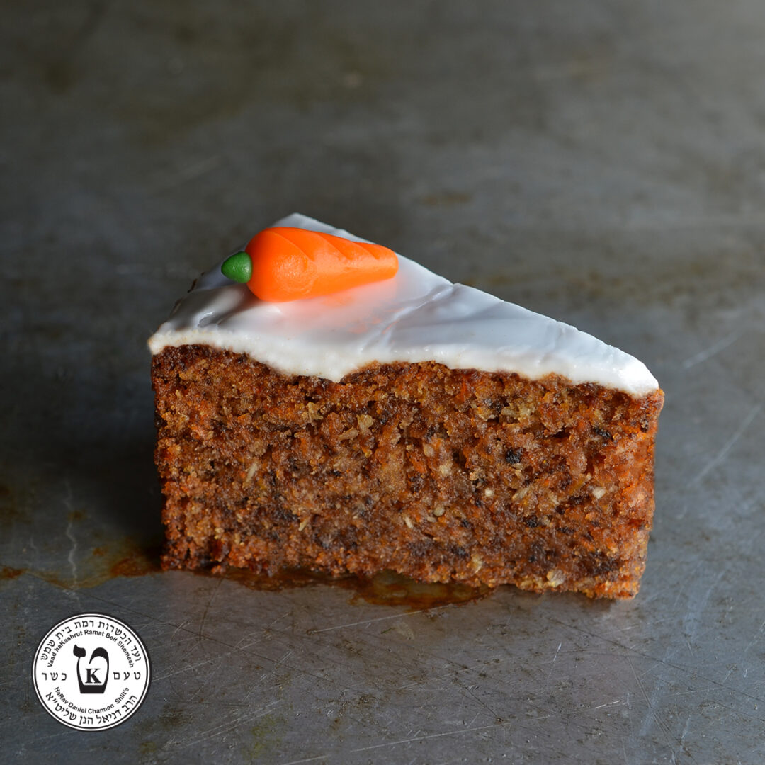 Fűszeres muffin jellegű sütemény fényes cukormázzal, marcipánrépával díszítve.